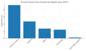 On an annual basis, house prices are now 2.4% higher than a year ago, easing from the 2.7% year-on-year growth rate reported in June. While the market continues to show resilience, the figures suggest a cooling pace of growth amid ongoing economic uncertainty and affordability pressures.