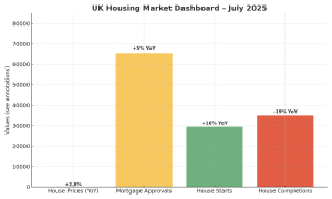 UK house prices rose 2.8% year-on-year (July 2024 → July 2025).